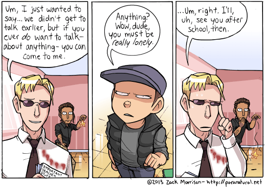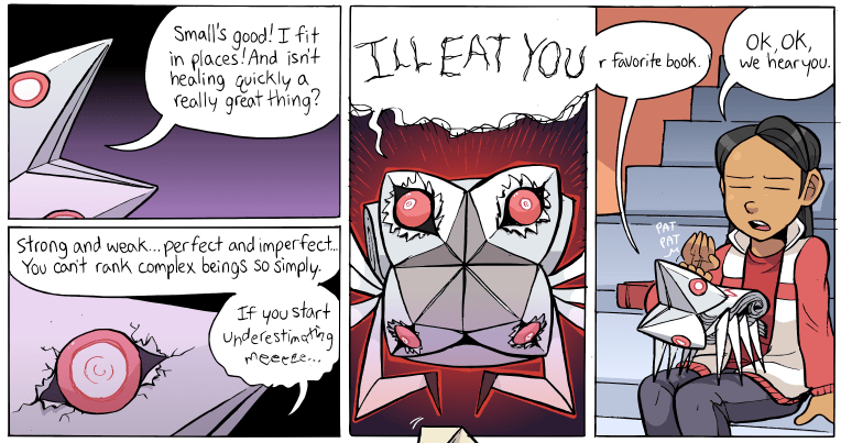 I spent a big chunk of this essay talking about one character because, to me, he exemplifies everything that I love about this comic. How it’s a story that manages to make me laugh and cry within moments of each other, and that only continues to grow and change. This is a story that could only be told as a comic and could only exist like it does as a webcomic. It provides a look at something that I always thought I knew so well and manages to breath new life into it. This is what makes the medium so special to me and why I decided to start this blog in the first place. I hope that I’ve at least convinced one other person to give this series a try, because it truly is one of the most unique works I’ve ever read and I would love to share it with others.