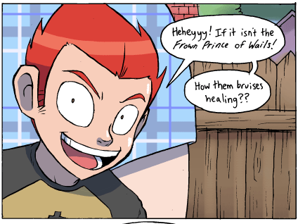From his very first scene, where he describes getting into a fight with a guy weilding a stale baguette as a weapon, we know he gets into a lot of scraps. He also has a hair trigger temper, given that he spends the entire first chapter going after Max for simply insinuating that his hair was uncool. However, when Johnny finally gets to put the beat down on the new kid, his attitude towards Max goes from hostile to friendly, even if he does want to keep beating Max up.