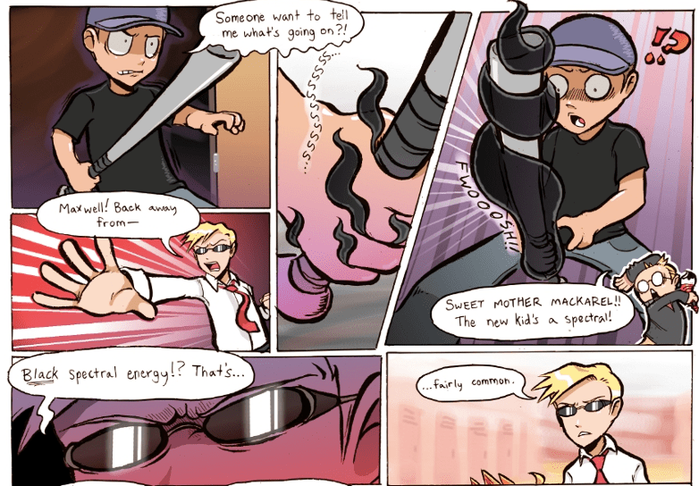 Don’t stop me if you’ve heard this one. A kid moves to a new town and if that wasn’t stressful enough, he starts to suspect that something weird is going on. He’s seeing creepy floating blobs, something that went after him in the middle of the night, and even what looks like a serpent flying past his window at school. Luckily for him, his new school is home to the Activity Club: a group of young people and their teacher who can not only see spirits, but also fight them. This is a set up you’ve probably seen in a million different manga/anime/Saturday-morning cartoons, but that doesn’t stop Paranatural from feeling new. From its dense and layered style of comedy to the way it plays with genre conventions, this is a comic that shows just what kind of stories webcomics are capable of telling. So, let’s grab our tools, channel our spectral energy, as we look into what makes Paranatural so worth reading.